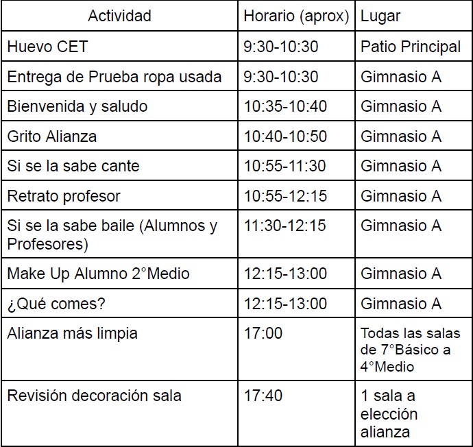 Cronograma Día 10 de Agosto Alianzas
