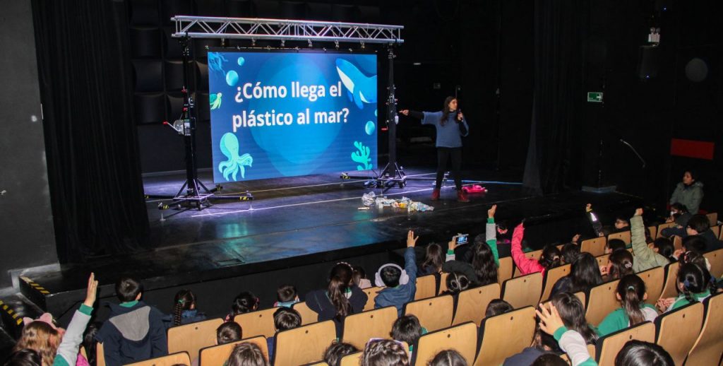 Posteriormente, después de la presentación de los cortometrajes, investigadores de Puerto Ideas, realizan un diálogo interactivo con los estudiantes, permitiendo entablar una serie de interrogantes y reflexión acerca del cuidado de nuestro medio ambiente. Entre ellos, lo más importante, se conversó acerca de los desechos que llegan al mar producto de nuestro consumo excesivo de plásticos, plásticos que están provocando una preocupante mortalidad de las especies marinas. Por otro lado se habló que hoy existe un nuevo continente. La isla de basura que flota en el Pacífico triplica el tamaño de Francia y es el mayor vertedero oceánico del mundo con 1,8 billones de trozos de plástico flotante que matan, cada año, a miles de animales marinos entre California y Hawái. Se nos llama a no utilizar elementos de plásticos. Se invita a la reflexión y cuidado de nuestras especies marinas.