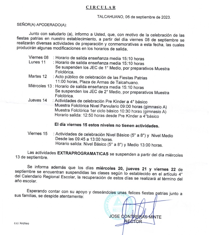 CIRCULAR FIESTAS PATRIAS 2023