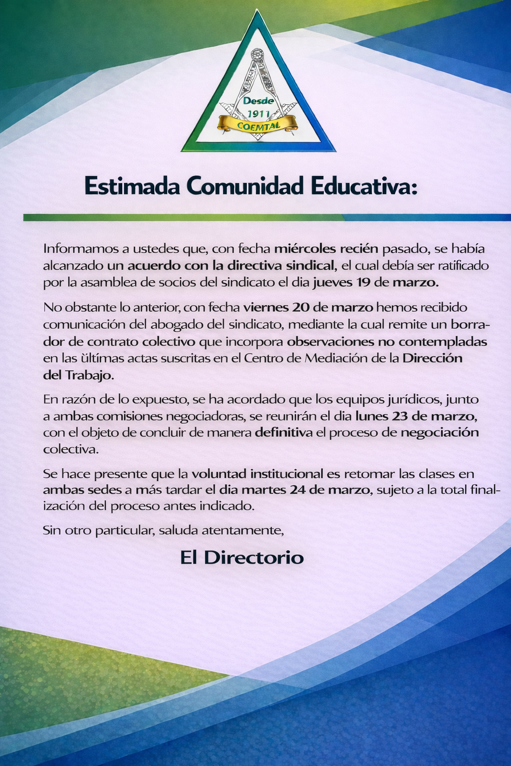 El Colegio Etchegoyen – Talcahuano por muchos años aspiró a expandir su ideario institucional posibilitando que nuevas familias y sus integrantes en edad escolar, puedan acceder y vivenciar los valores universales de libertad, fraternidad e igualdad. Ello se materializaría físicamente en crear un nuevo colegio dentro de la comuna. Fue así como a partir de marzo del año 2021, se erige en una nueva sede, en el sector de Brisa del Sol, justo en los límites o conurbación de las importantes comunas de Talcahuano, Hualpén y Concepción. LEER MÁS